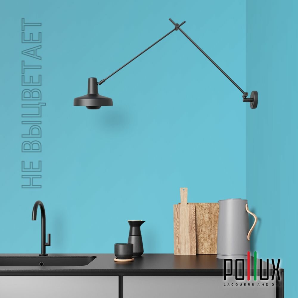 Краска моющаяся интерьерная для стен и потолков, Pollux INTERIOR без запаха, быстросохнущая, акриловая, матовое покрытие, цвет NCS S 5030-B10G, 1л.