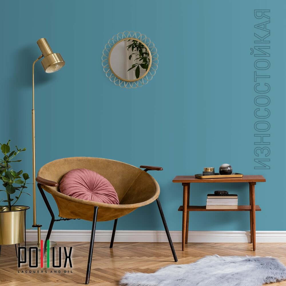 Краска моющаяся интерьерная для стен и потолков, Pollux INTERIOR без запаха, быстросохнущая, акриловая, матовое покрытие, цвет NCS S 5030-B10G, 1л.