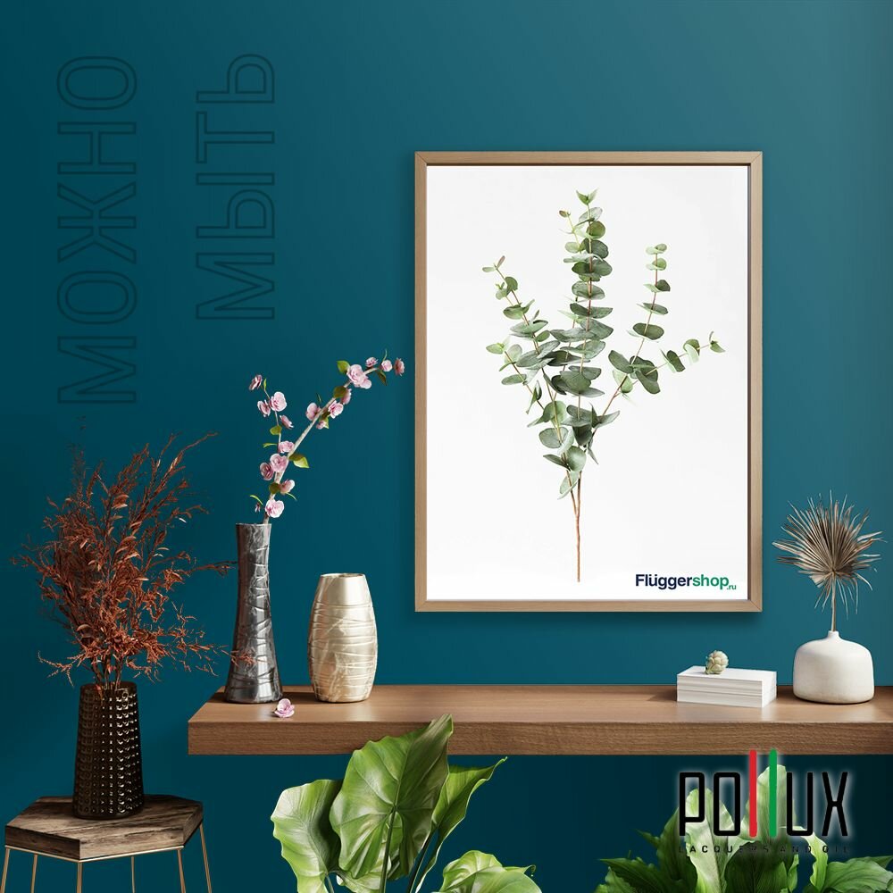 Краска моющаяся интерьерная для стен и потолков, Pollux INTERIOR без запаха, быстросохнущая, акриловая, матовое покрытие, цвет NCS S 8010-B10G, 1л.