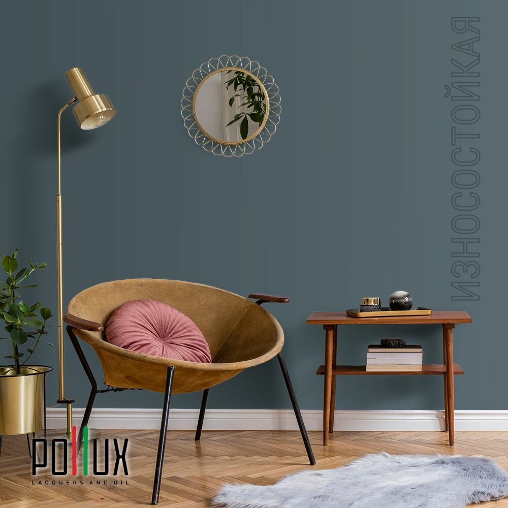 Краска моющаяся интерьерная для стен и потолков, Pollux INTERIOR без запаха, быстросохнущая, акриловая, матовое покрытие, цвет NCS S 8010-B10G, 1л.