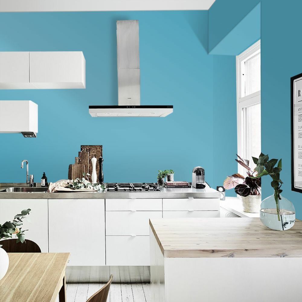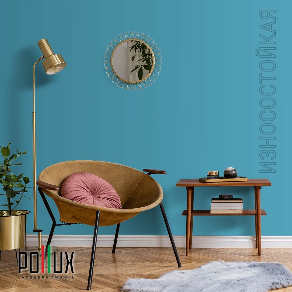Краска моющаяся интерьерная для стен и потолков, Pollux INTERIOR без запаха, быстросохнущая, акриловая, матовое покрытие, цвет NCS S 5030-B10G, 1л.