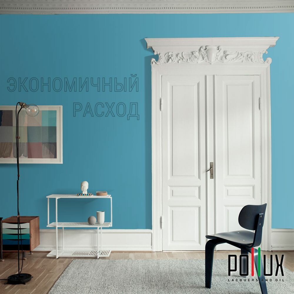 Краска моющаяся интерьерная для стен и потолков, Pollux INTERIOR без запаха, быстросохнущая, акриловая, матовое покрытие, цвет NCS S 1030-B10G, 1л.