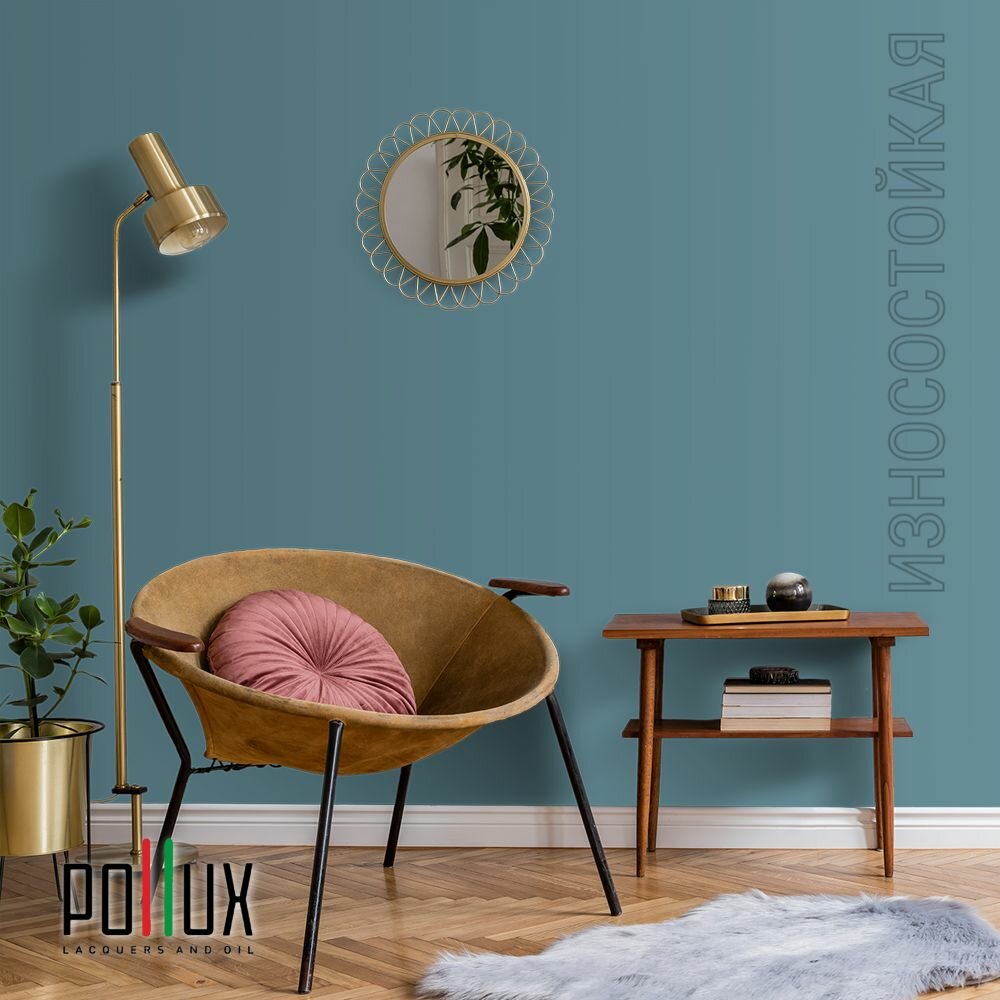 Краска моющаяся интерьерная для стен и потолков, Pollux INTERIOR без запаха, быстросохнущая, акриловая, матовое покрытие, цвет NCS S 5030-B10G, 1л.