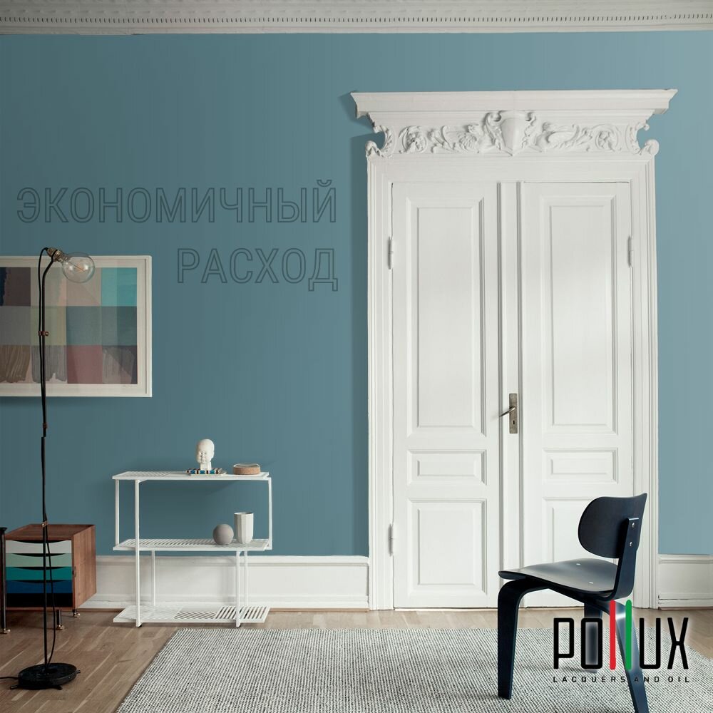 Краска моющаяся интерьерная для стен и потолков, Pollux INTERIOR без запаха, быстросохнущая, акриловая, матовое покрытие, цвет NCS S 1050-B10G, 1л.