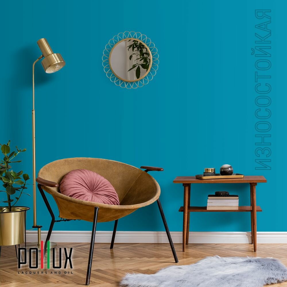 Краска моющаяся интерьерная для стен и потолков, Pollux INTERIOR без запаха, быстросохнущая, акриловая, матовое покрытие, цвет NCS S 5030-B10G, 1л.