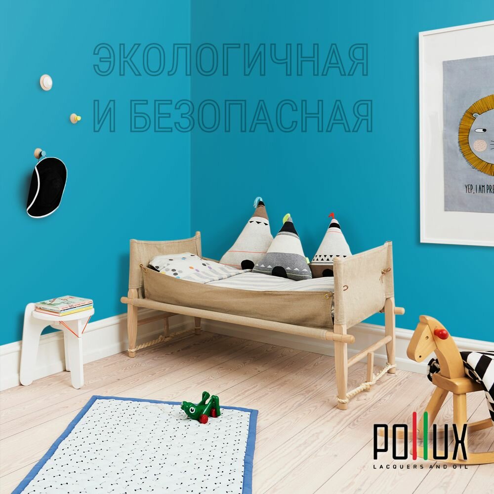 Краска моющаяся интерьерная для стен и потолков, Pollux INTERIOR без запаха, быстросохнущая, акриловая, матовое покрытие, цвет NCS S 0510-B10G, 1л.
