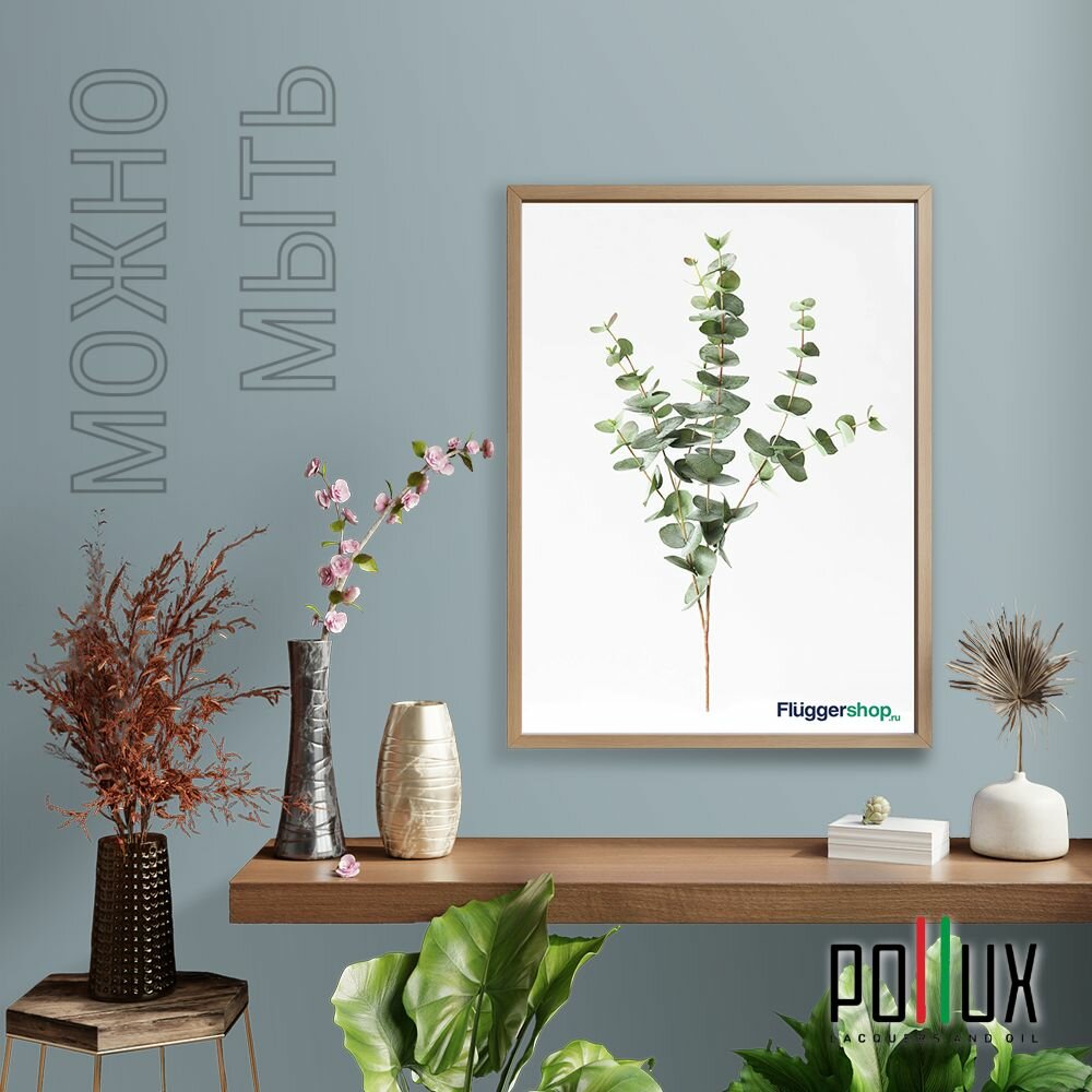 Краска моющаяся интерьерная для стен и потолков, Pollux INTERIOR без запаха, быстросохнущая, акриловая, матовое покрытие, цвет NCS S 4030-B10G, 1л.