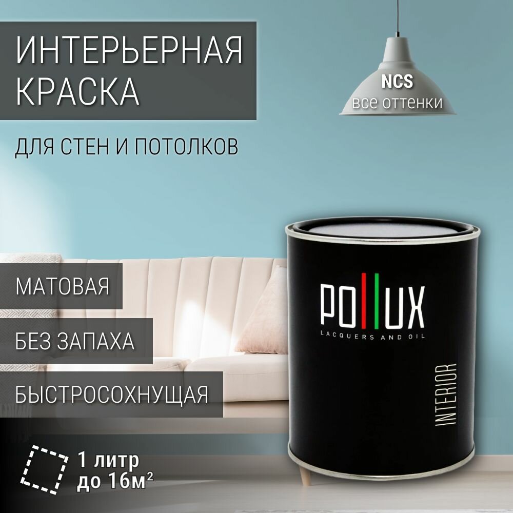 Краска моющаяся интерьерная для стен и потолков, Pollux INTERIOR без запаха, быстросохнущая, акриловая, матовое покрытие, цвет NCS S 1030-B10G, 1л.