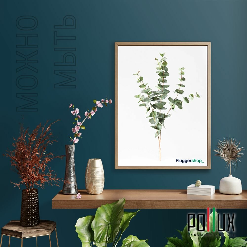 Краска моющаяся интерьерная для стен и потолков, Pollux INTERIOR без запаха, быстросохнущая, акриловая, матовое покрытие, цвет NCS S 4050-B10G, 1л.