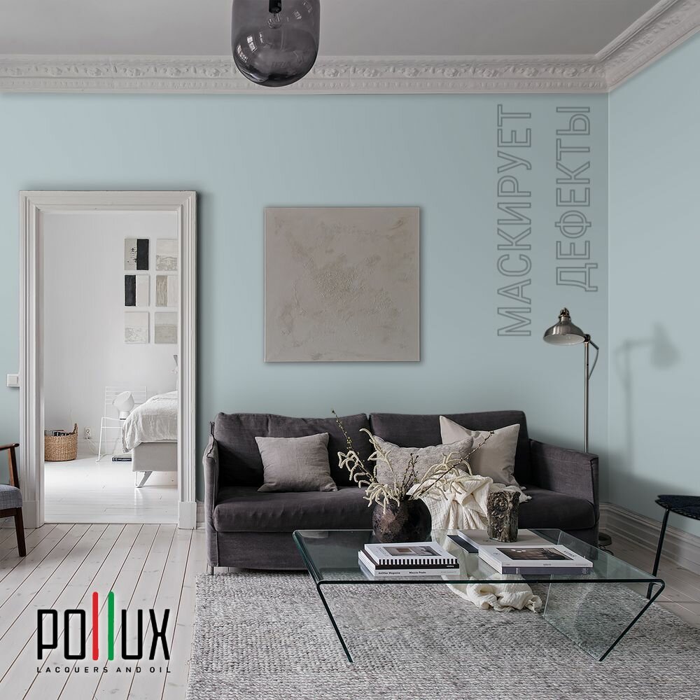 Краска моющаяся интерьерная для стен и потолков, Pollux INTERIOR без запаха, быстросохнущая, акриловая, матовое покрытие, цвет NCS S 1030-B10G, 1л.
