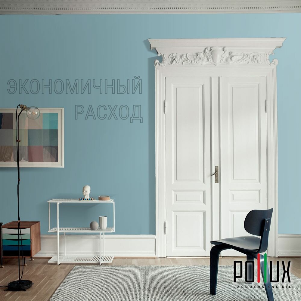 Краска моющаяся интерьерная для стен и потолков, Pollux INTERIOR без запаха, быстросохнущая, акриловая, матовое покрытие, цвет NCS S 2010-B10G, 1л.