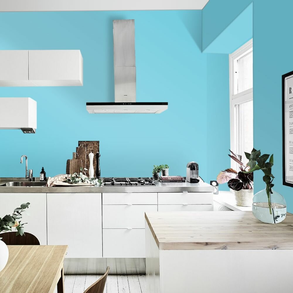 Краска моющаяся интерьерная для стен и потолков, Pollux INTERIOR без запаха, быстросохнущая, акриловая, матовое покрытие, цвет NCS S 0540-B10G, 1л.