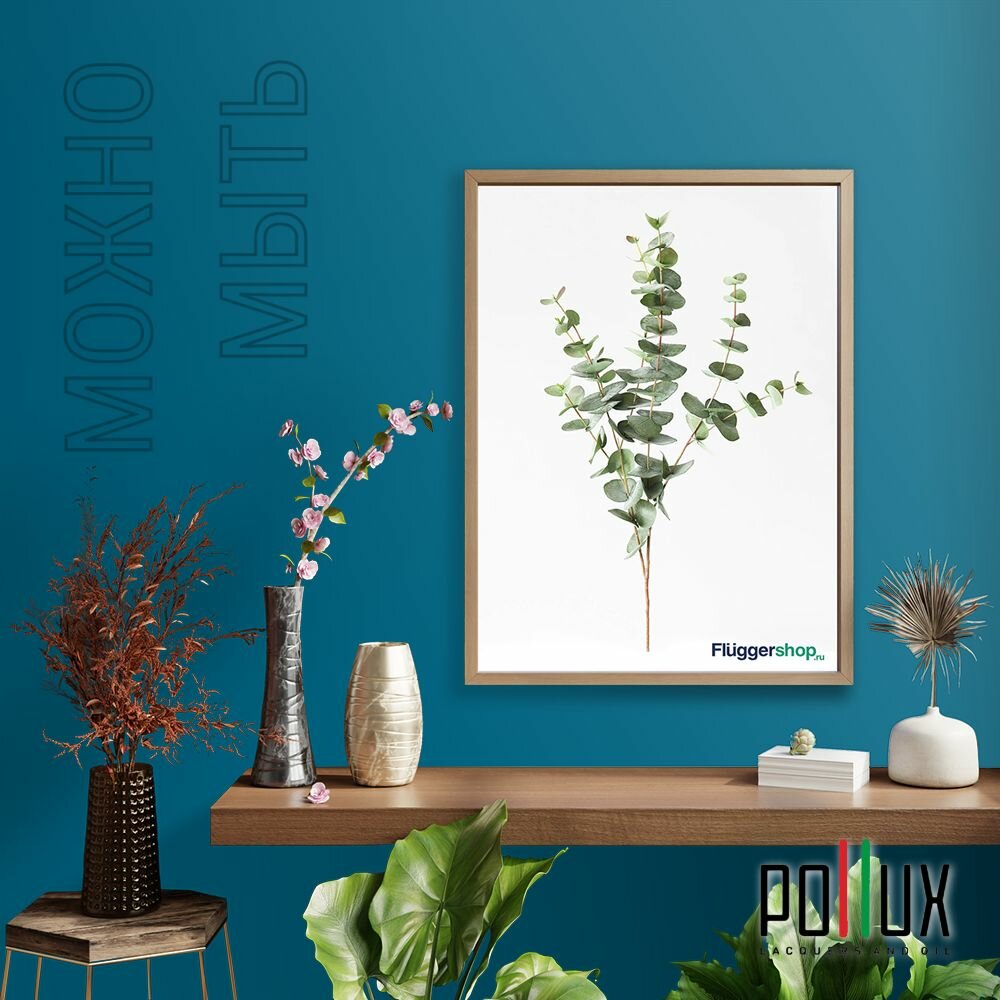 Краска моющаяся интерьерная для стен и потолков, Pollux INTERIOR без запаха, быстросохнущая, акриловая, матовое покрытие, цвет NCS S 5030-B10G, 1л.