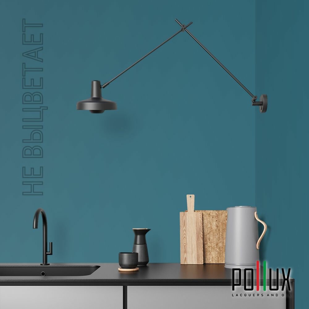 Краска моющаяся интерьерная для стен и потолков, Pollux INTERIOR без запаха, быстросохнущая, акриловая, матовое покрытие, цвет NCS S 5030-B10G, 1л.