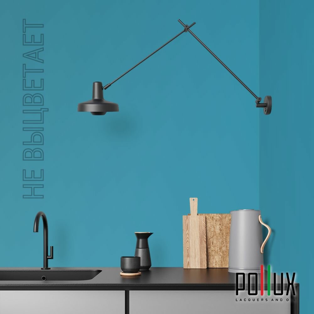Краска моющаяся интерьерная для стен и потолков, Pollux INTERIOR без запаха, быстросохнущая, акриловая, матовое покрытие, цвет NCS S 5030-B10G, 1л.