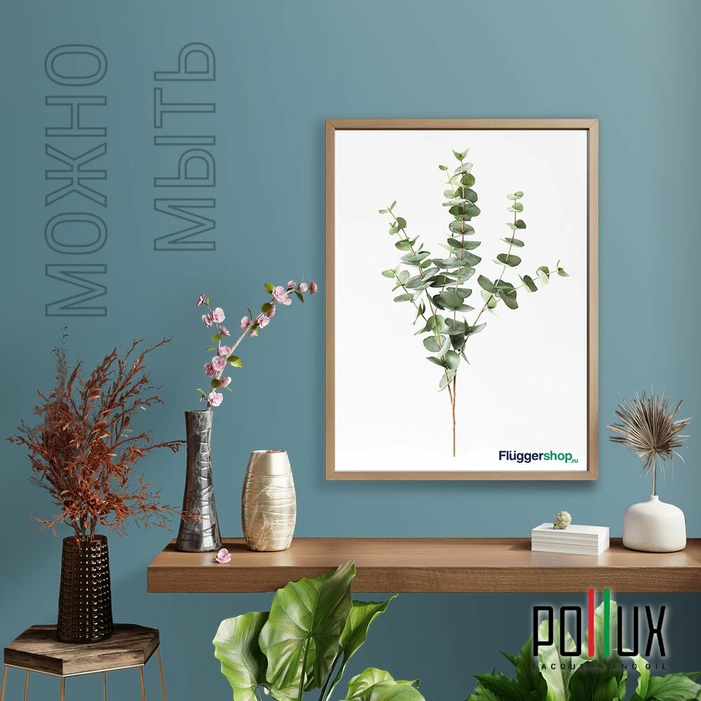 Краска моющаяся интерьерная для стен и потолков, Pollux INTERIOR без запаха, быстросохнущая, акриловая, матовое покрытие, цвет NCS S 8010-B10G, 1л.