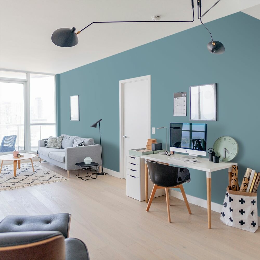 Краска моющаяся интерьерная для стен и потолков, Pollux INTERIOR без запаха, быстросохнущая, акриловая, матовое покрытие, цвет NCS S 5040-B10G, 1л.