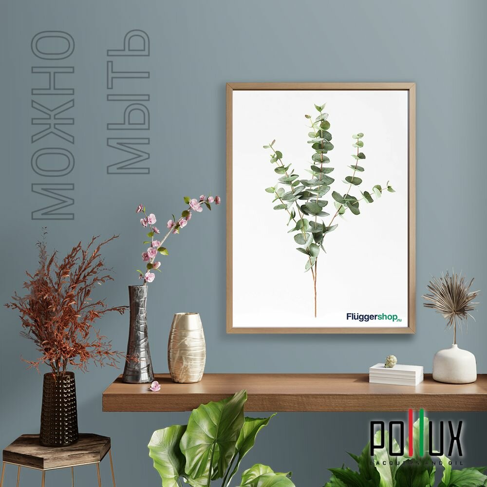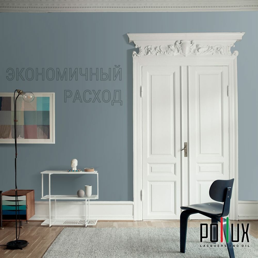 Краска моющаяся интерьерная для стен и потолков, Pollux INTERIOR без запаха, быстросохнущая, акриловая, матовое покрытие, цвет NCS S 8010-B10G, 1л.