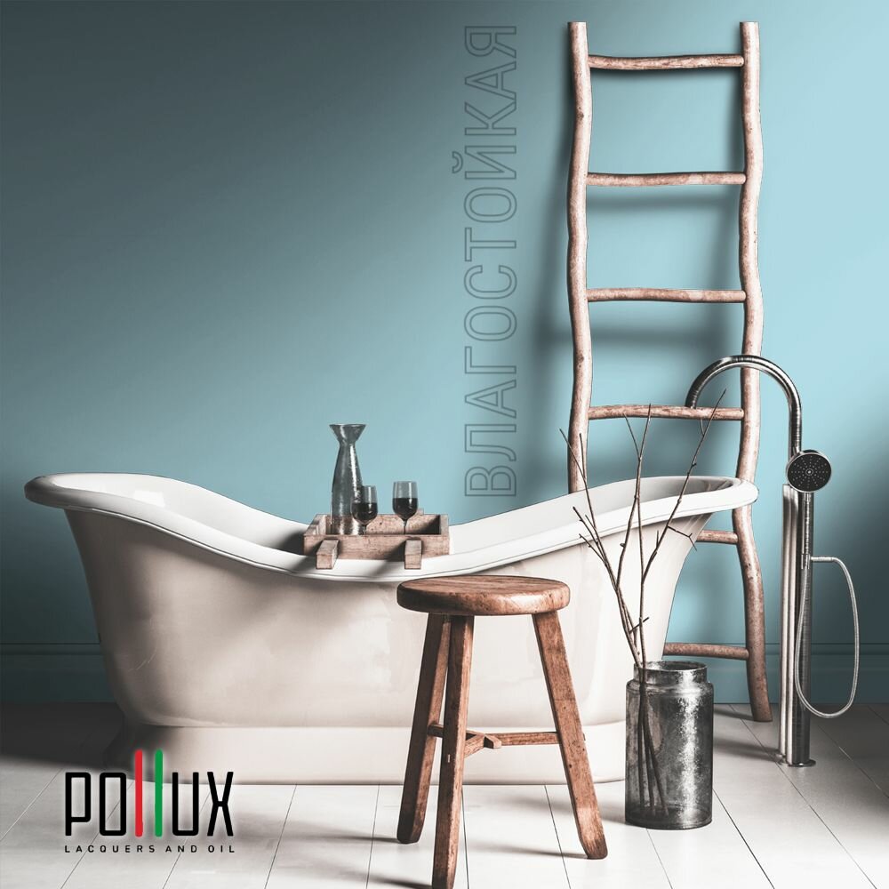 Краска моющаяся интерьерная для стен и потолков, Pollux INTERIOR без запаха, быстросохнущая, акриловая, матовое покрытие, цвет NCS S 2010-B10G, 1л.