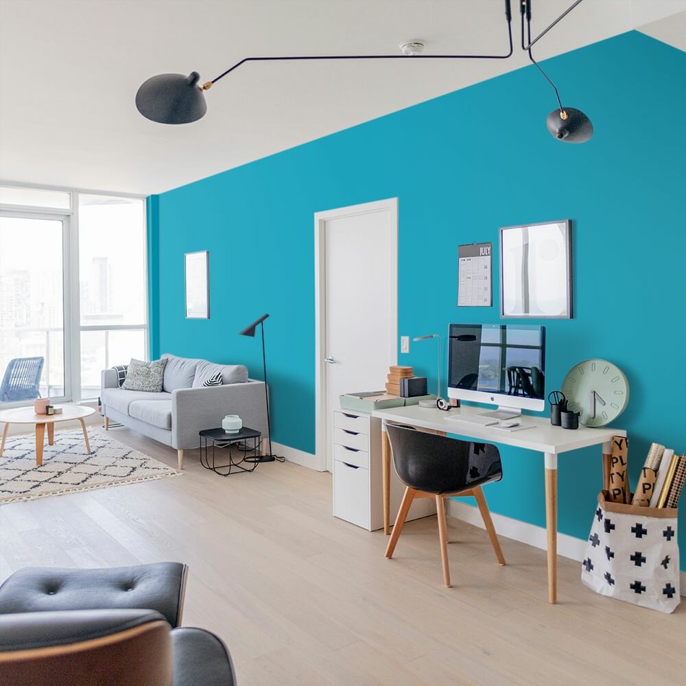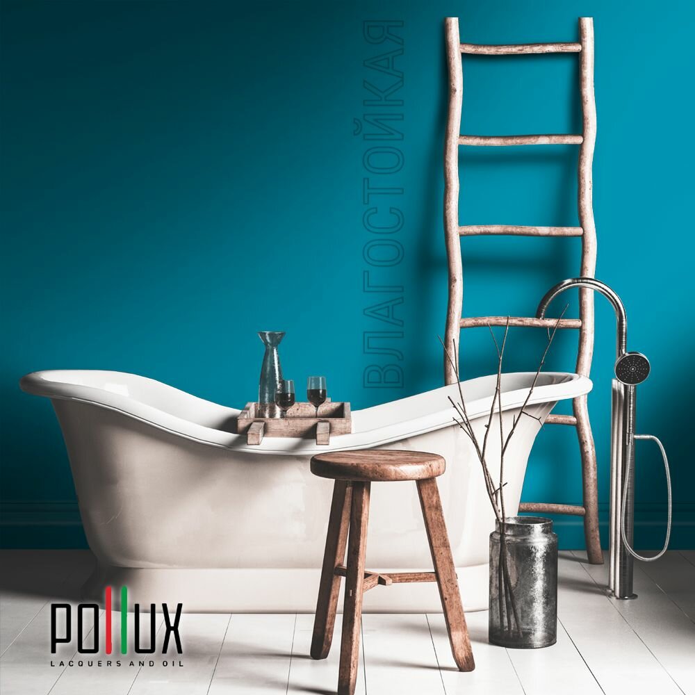Краска моющаяся интерьерная для стен и потолков, Pollux INTERIOR без запаха, быстросохнущая, акриловая, матовое покрытие, цвет NCS S 5030-B10G, 1л.