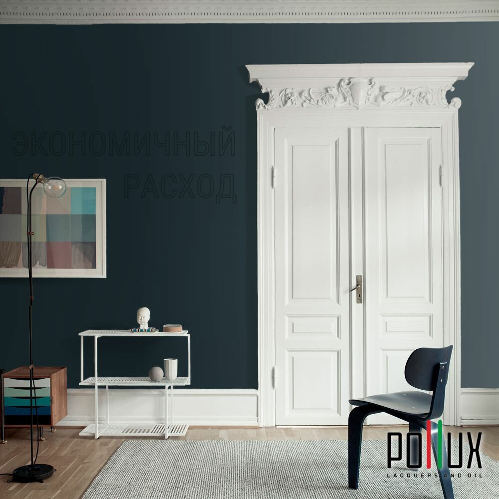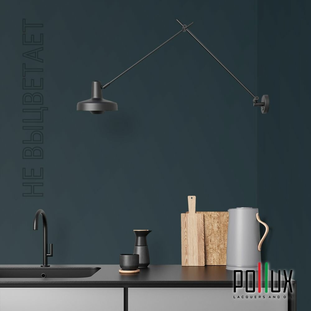 Краска моющаяся интерьерная для стен и потолков, Pollux INTERIOR без запаха, быстросохнущая, акриловая, матовое покрытие, цвет NCS S 8010-B10G, 1л.