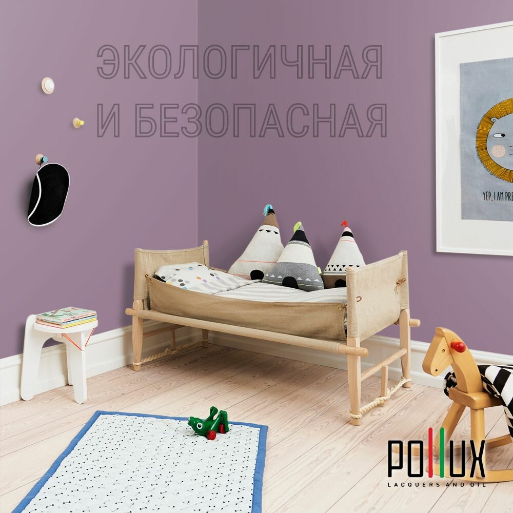 Краска моющаяся интерьерная для стен и потолков, Pollux INTERIOR без запаха, быстросохнущая, акриловая, матовое покрытие, цвет NCS S 2005-R40B, 1л.
