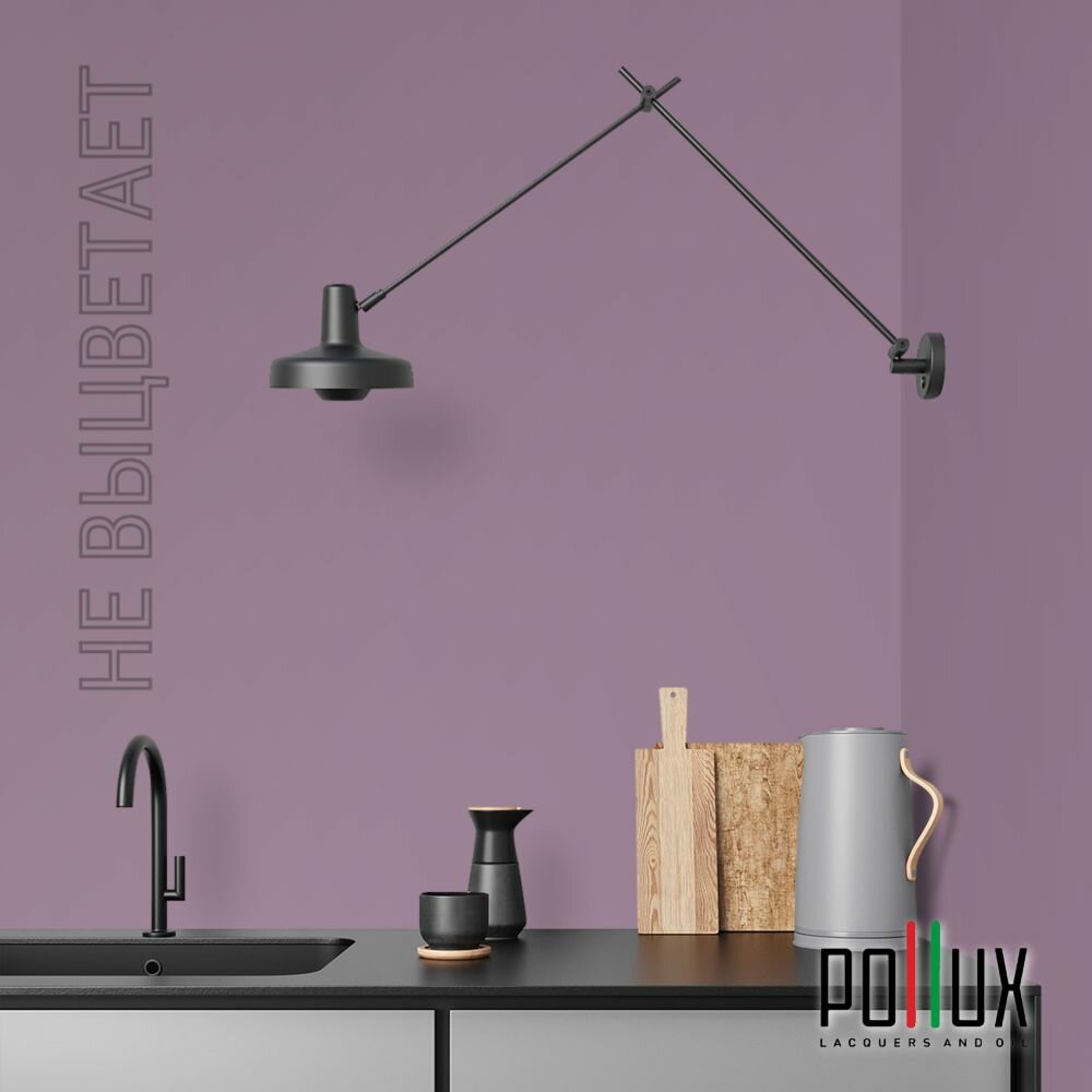 Краска моющаяся интерьерная для стен и потолков, Pollux INTERIOR без запаха, быстросохнущая, акриловая, матовое покрытие, цвет NCS S 7020-R40B, 1л.