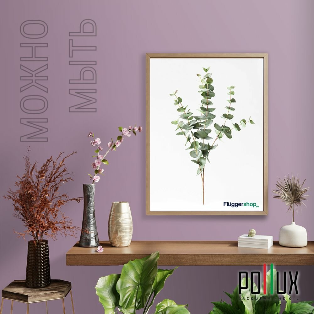 Краска моющаяся интерьерная для стен и потолков, Pollux INTERIOR без запаха, быстросохнущая, акриловая, матовое покрытие, цвет NCS S 2005-R40B, 1л.