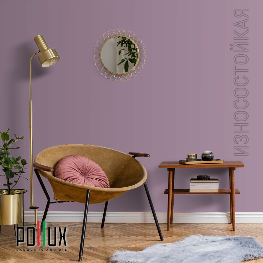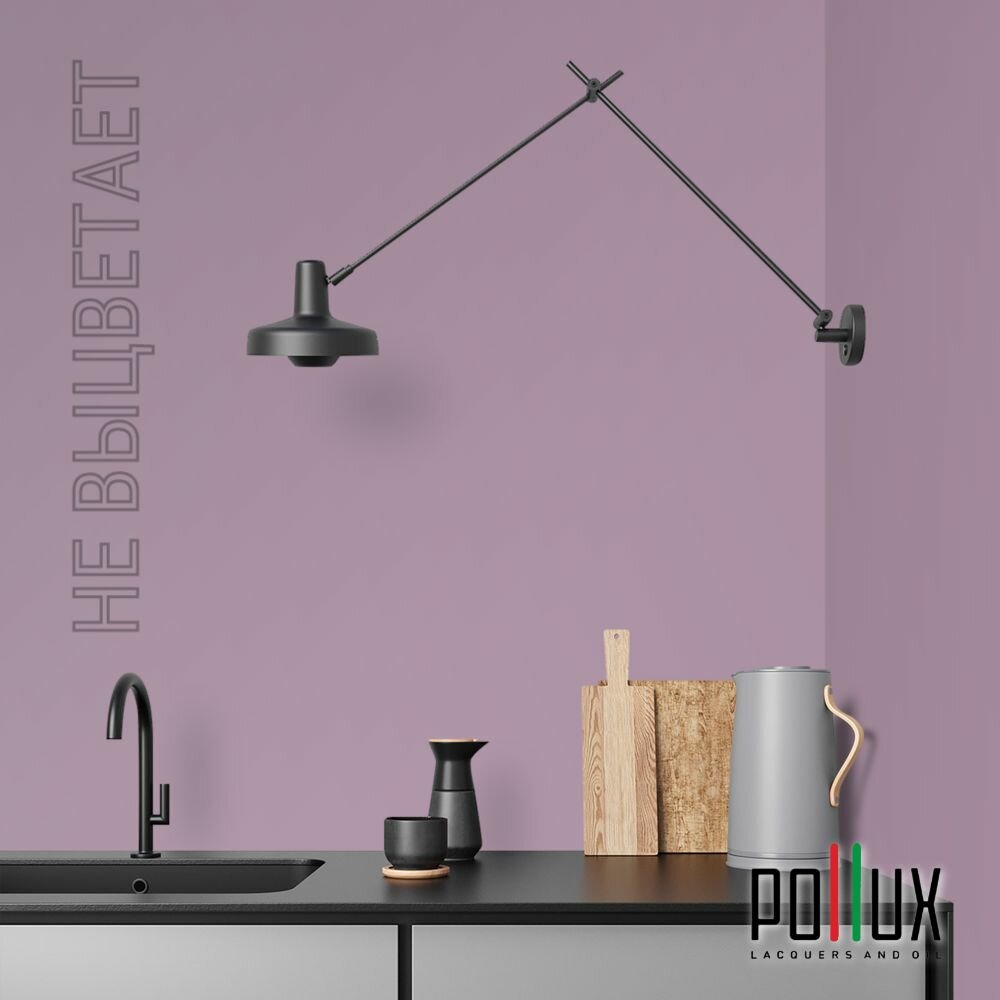 Краска моющаяся интерьерная для стен и потолков, Pollux INTERIOR без запаха, быстросохнущая, акриловая, матовое покрытие, цвет NCS S 0603-R40B, 1л.