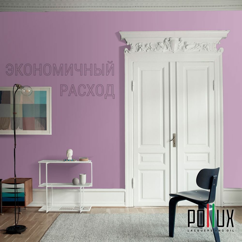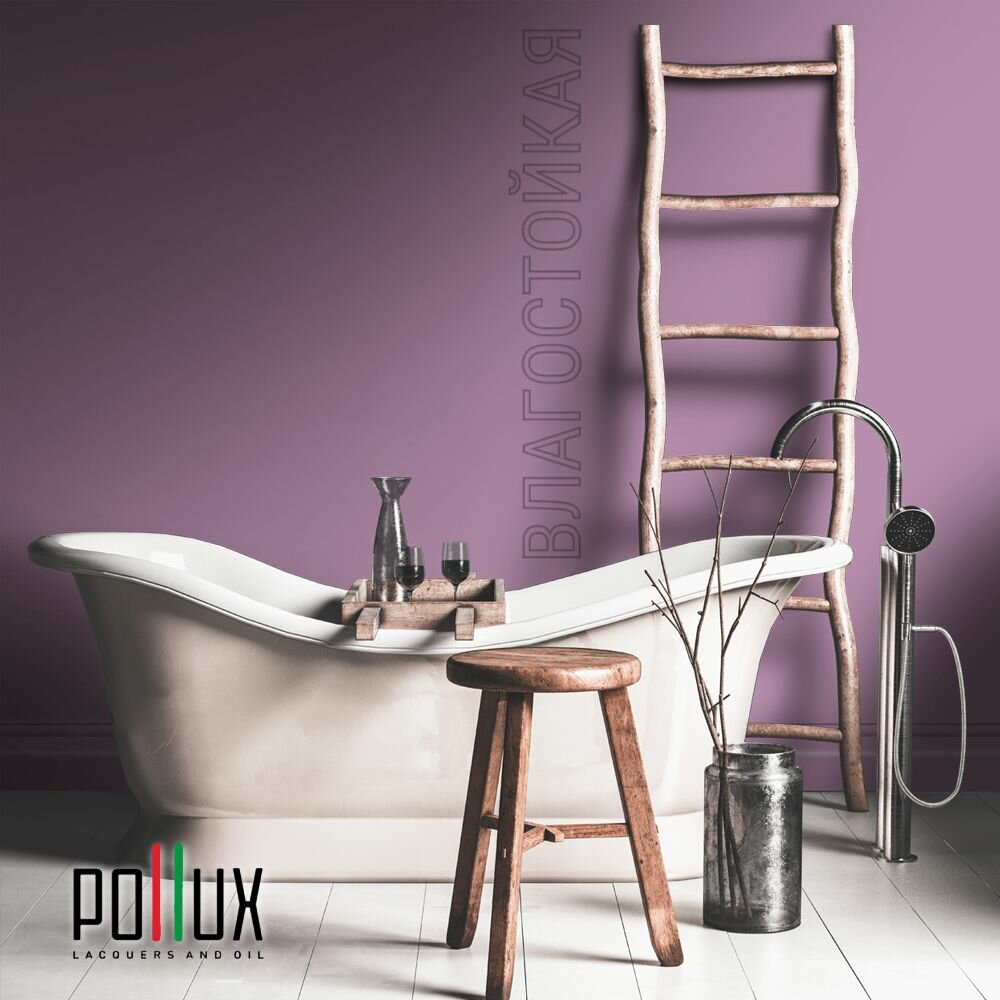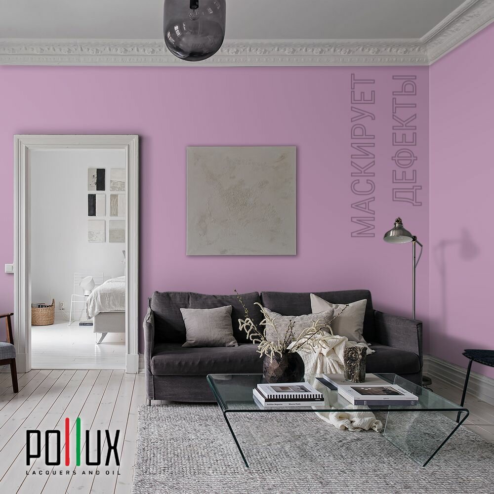 Краска моющаяся интерьерная для стен и потолков, Pollux INTERIOR без запаха, быстросохнущая, акриловая, матовое покрытие, цвет NCS S 0505-R40B, 1л.