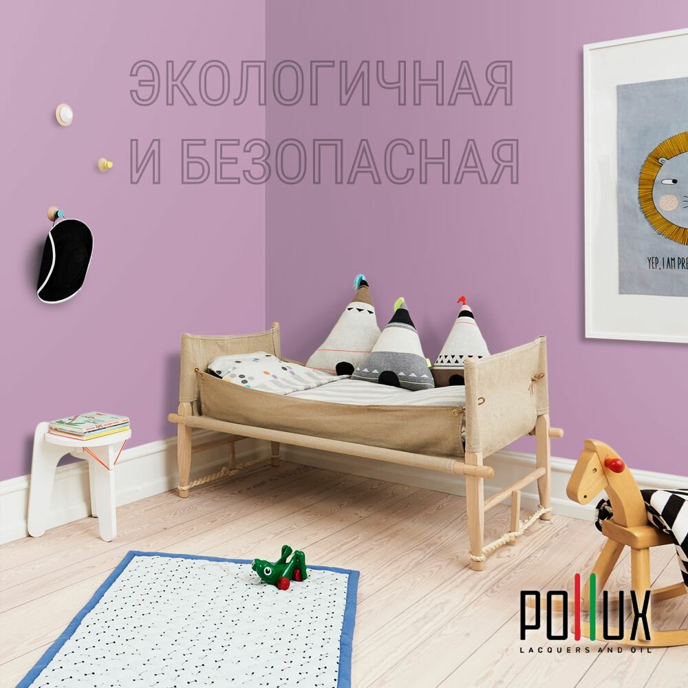 Краска моющаяся интерьерная для стен и потолков, Pollux INTERIOR без запаха, быстросохнущая, акриловая, матовое покрытие, цвет NCS S 0510-R40B, 1л.