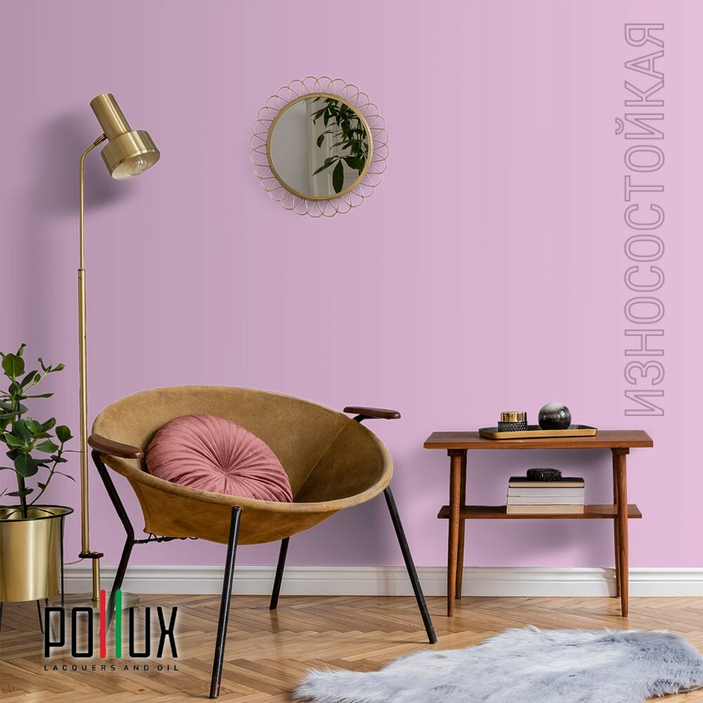 Краска моющаяся интерьерная для стен и потолков, Pollux INTERIOR без запаха, быстросохнущая, акриловая, матовое покрытие, цвет NCS S 0603-R40B, 1л.