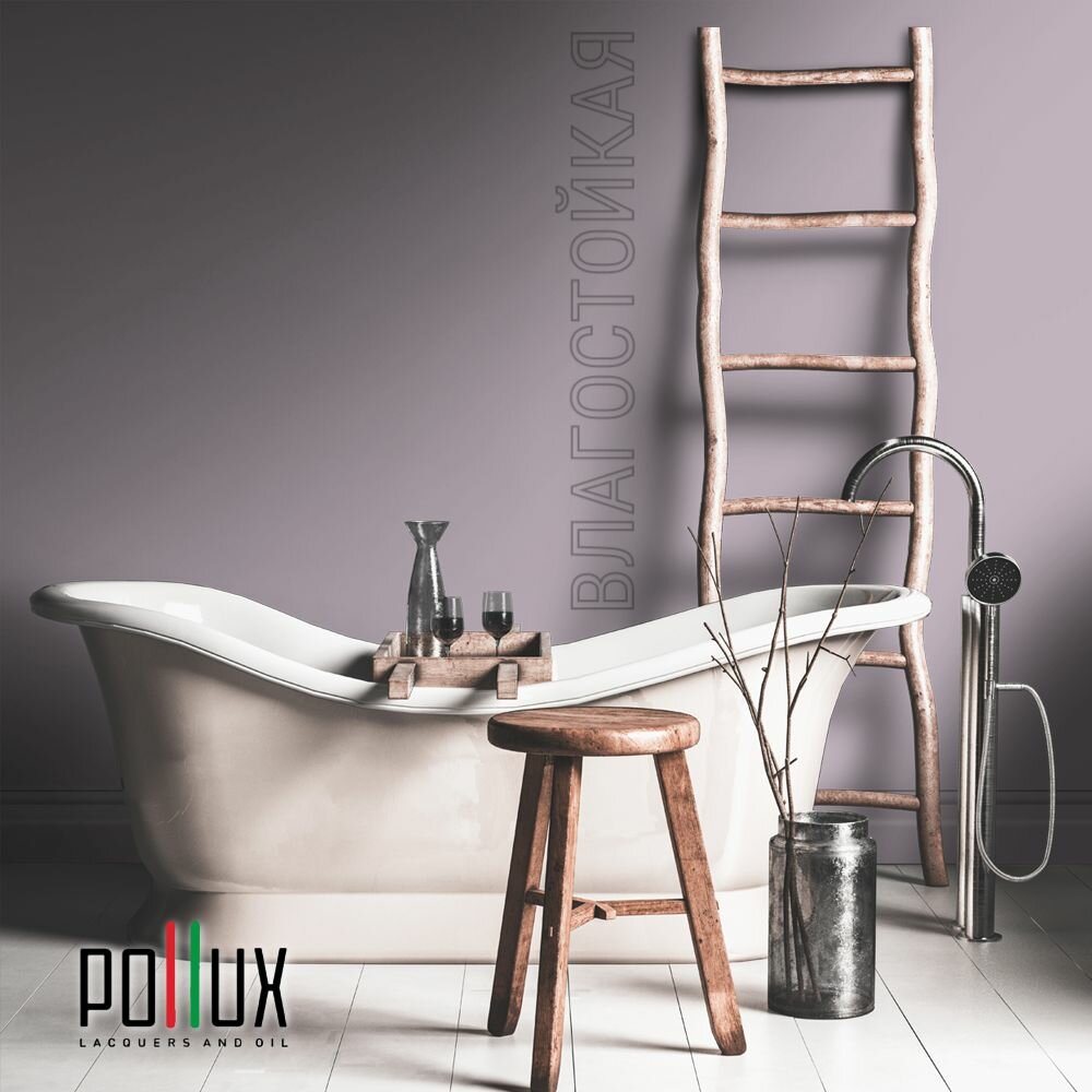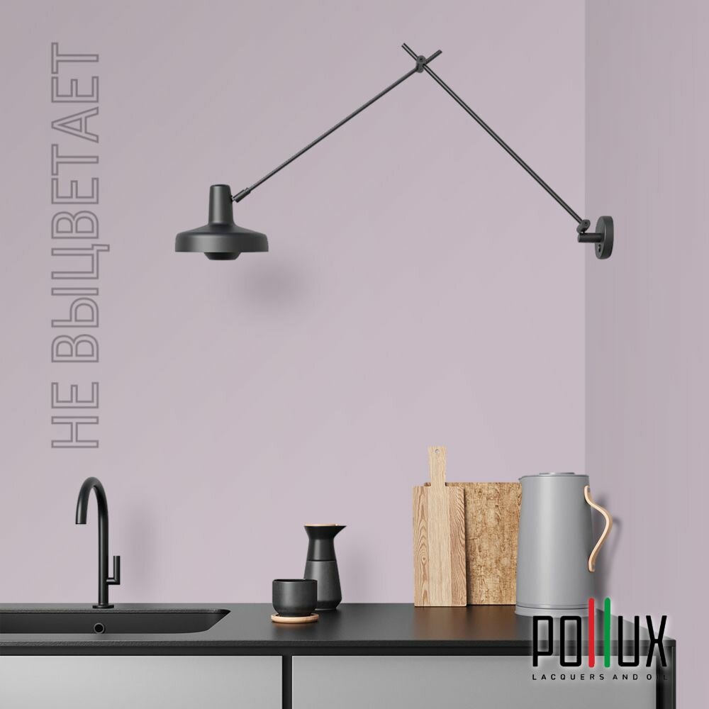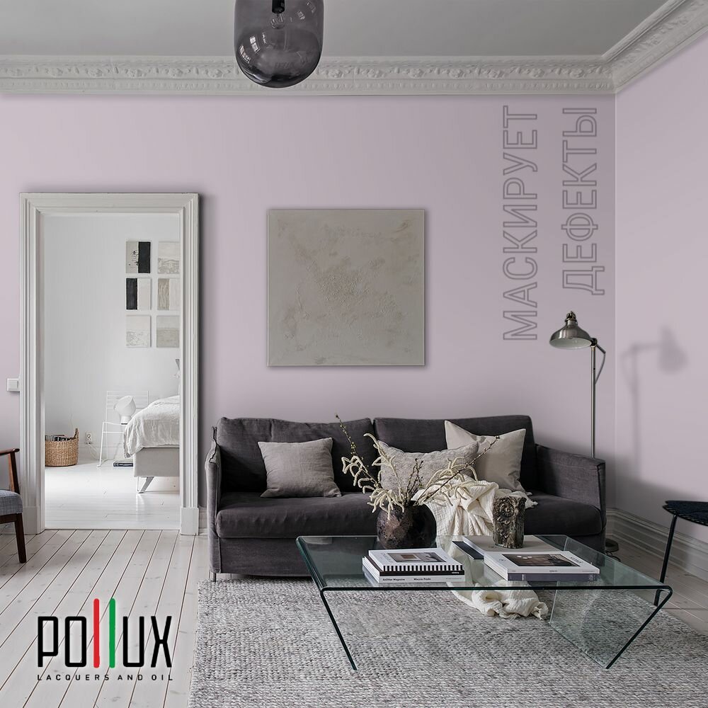 Краска моющаяся интерьерная для стен и потолков, Pollux INTERIOR без запаха, быстросохнущая, акриловая, матовое покрытие, цвет NCS S 0603-R40B, 1л.