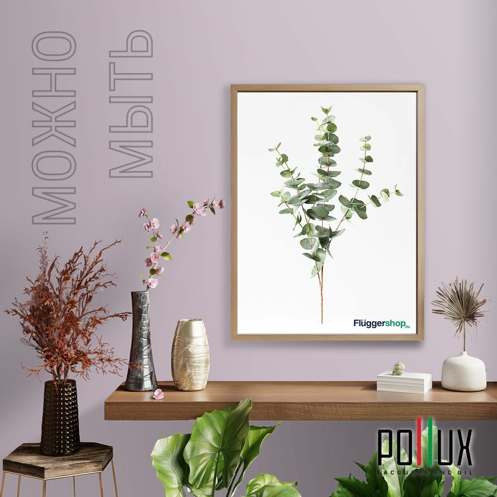 Краска моющаяся интерьерная для стен и потолков, Pollux INTERIOR без запаха, быстросохнущая, акриловая, матовое покрытие, цвет NCS S 2005-R40B, 1л.
