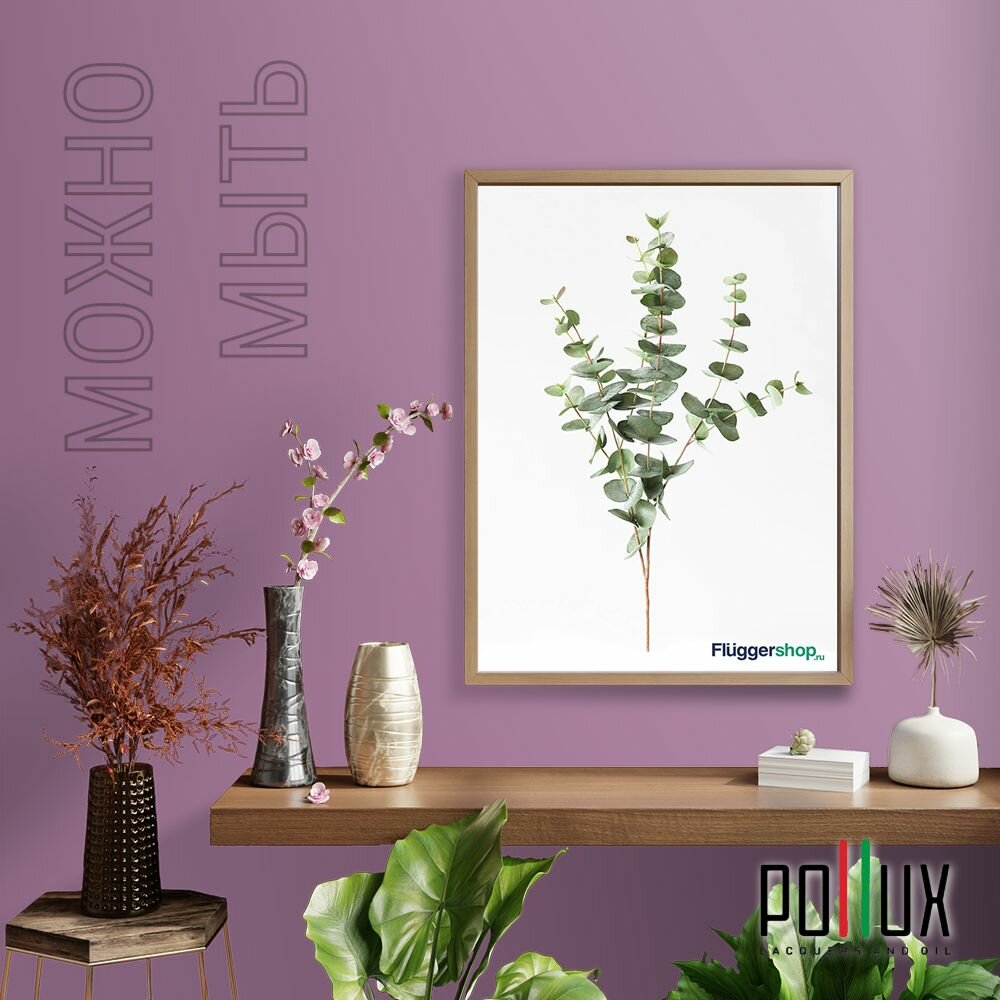 Краска моющаяся интерьерная для стен и потолков, Pollux INTERIOR без запаха, быстросохнущая, акриловая, матовое покрытие, цвет NCS S 2005-R40B, 1л.