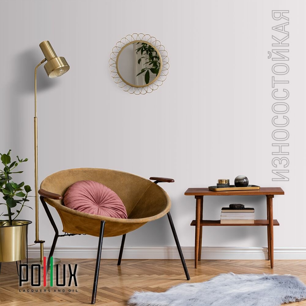 Купить Краска моющаяся интерьерная для стен и потолков, Pollux INTERIOR без запаха, быстросохнущая, акриловая, матовое покрытие, цвет NCS S 0603-R40B, 1л.