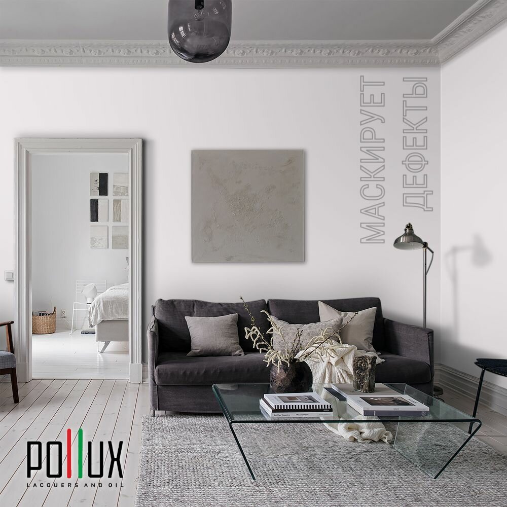 Краска моющаяся интерьерная для стен и потолков, Pollux INTERIOR без запаха, быстросохнущая, акриловая, матовое покрытие, цвет NCS S 1015-R40B, 1л.