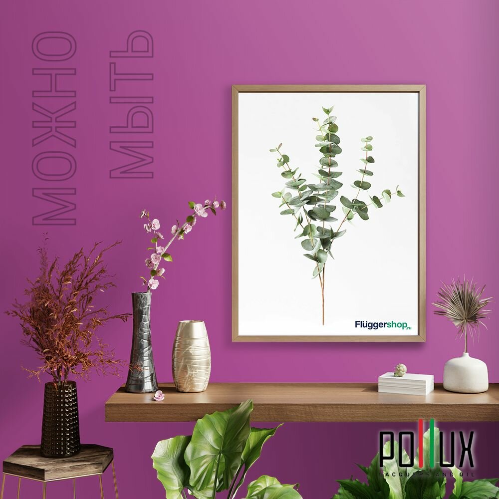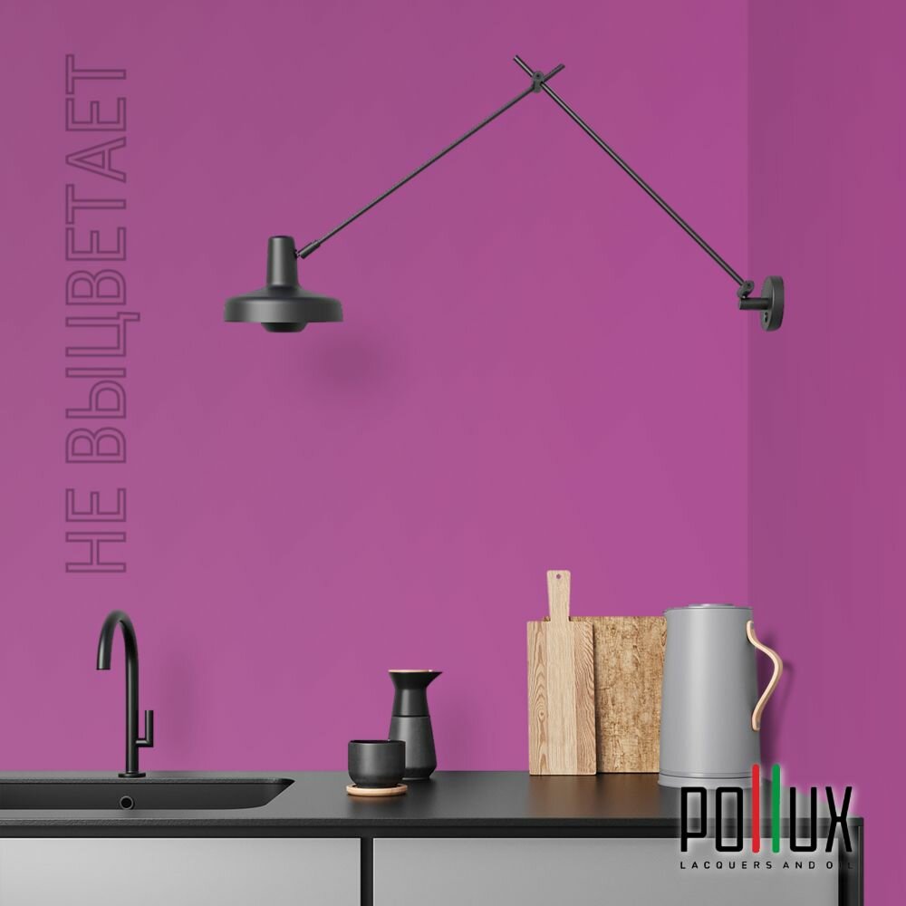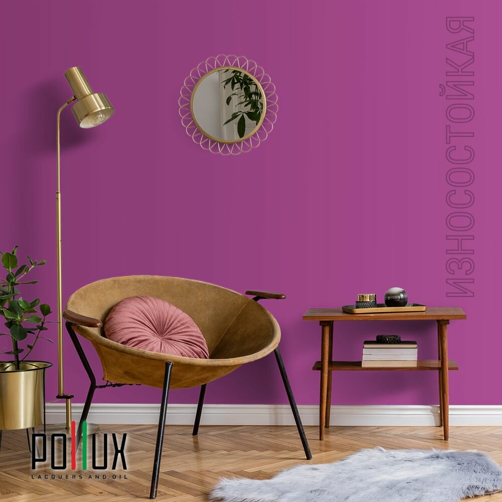 Краска моющаяся интерьерная для стен и потолков, Pollux INTERIOR без запаха, быстросохнущая, акриловая, матовое покрытие, цвет NCS S 2005-R40B, 1л.