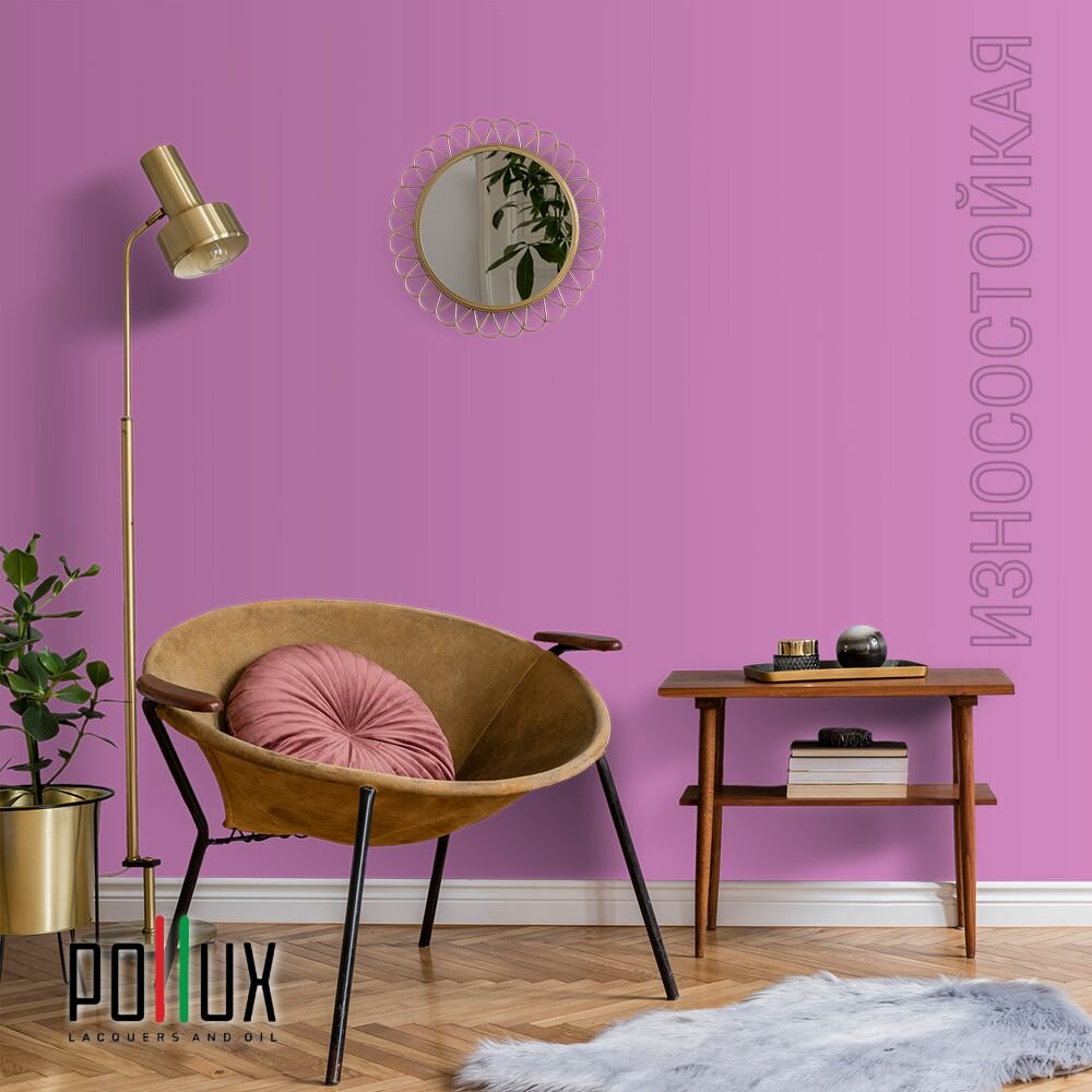 Краска моющаяся интерьерная для стен и потолков, Pollux INTERIOR без запаха, быстросохнущая, акриловая, матовое покрытие, цвет NCS S 0603-R40B, 1л.
