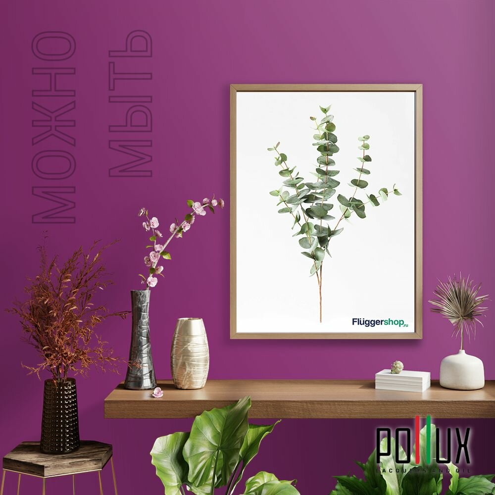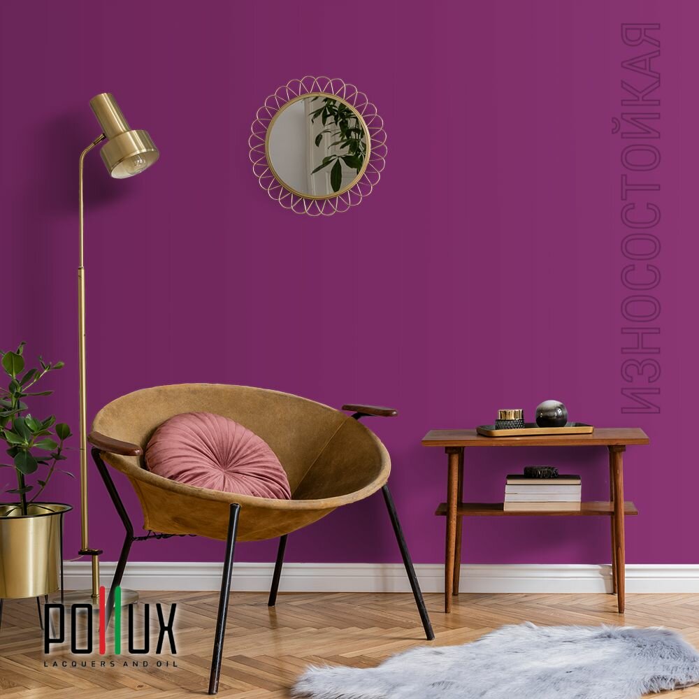 Краска моющаяся интерьерная для стен и потолков, Pollux INTERIOR без запаха, быстросохнущая, акриловая, матовое покрытие, цвет NCS S 2030-R40B, 1л.
