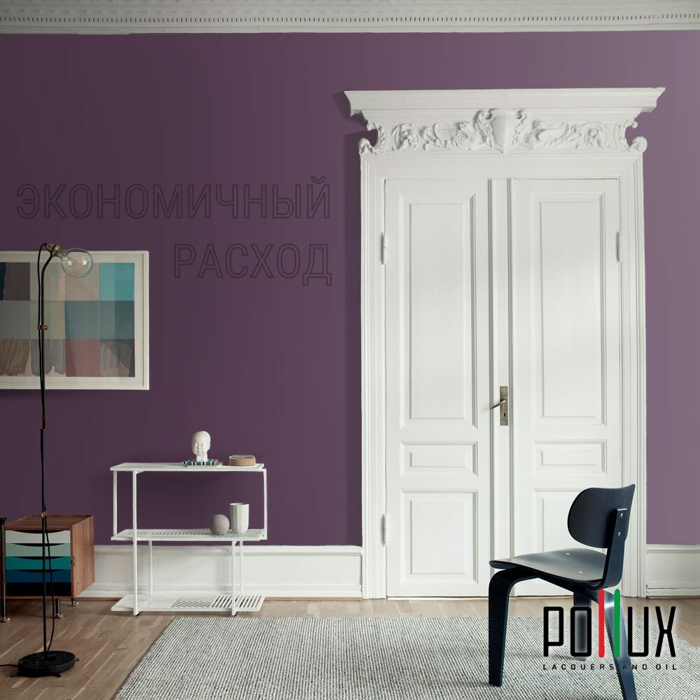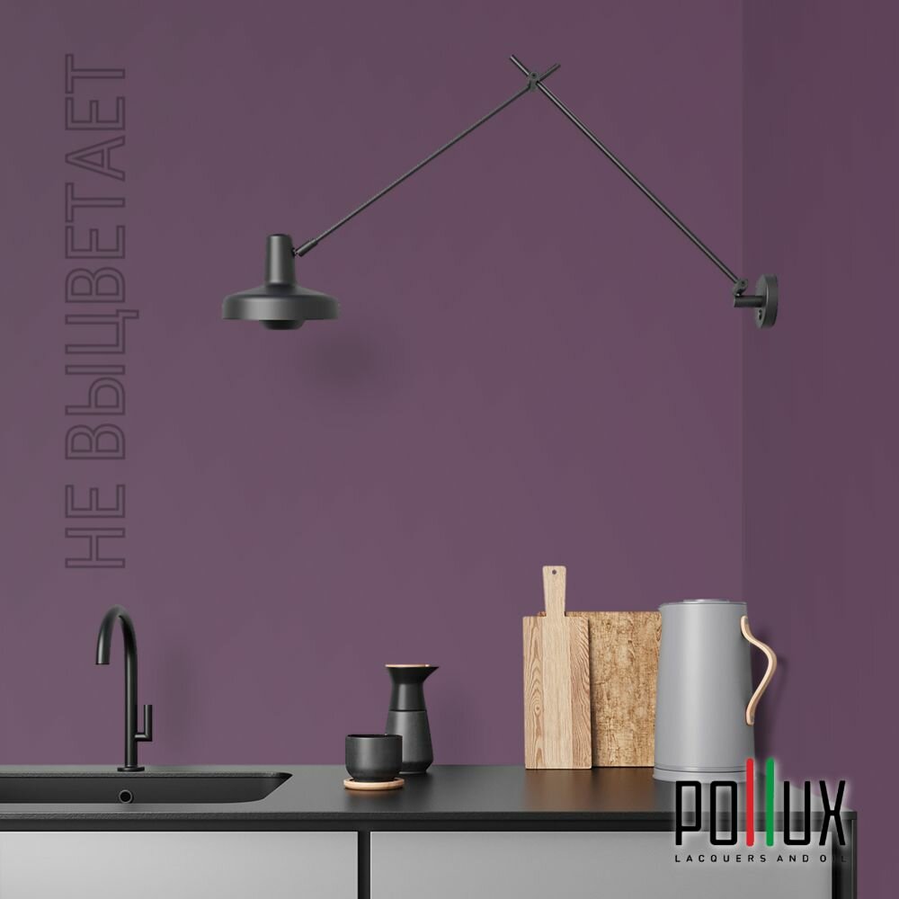 Краска моющаяся интерьерная для стен и потолков, Pollux INTERIOR без запаха, быстросохнущая, акриловая, матовое покрытие, цвет NCS S 7020-R40B, 1л.