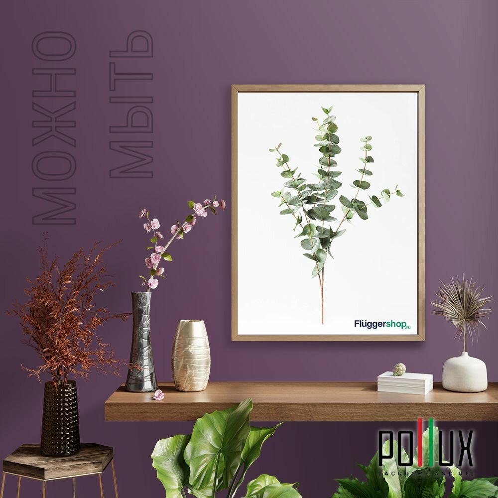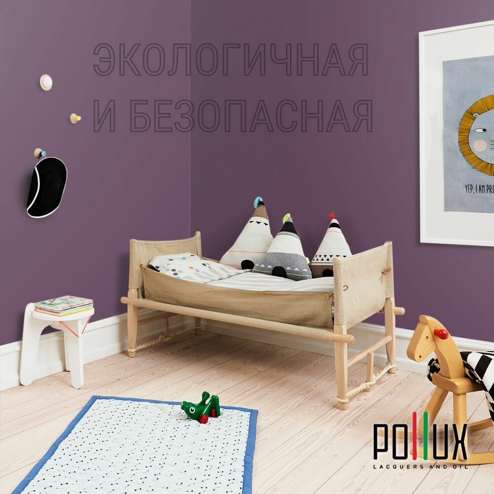 Краска моющаяся интерьерная для стен и потолков, Pollux INTERIOR без запаха, быстросохнущая, акриловая, матовое покрытие, цвет NCS S 2005-R40B, 1л.