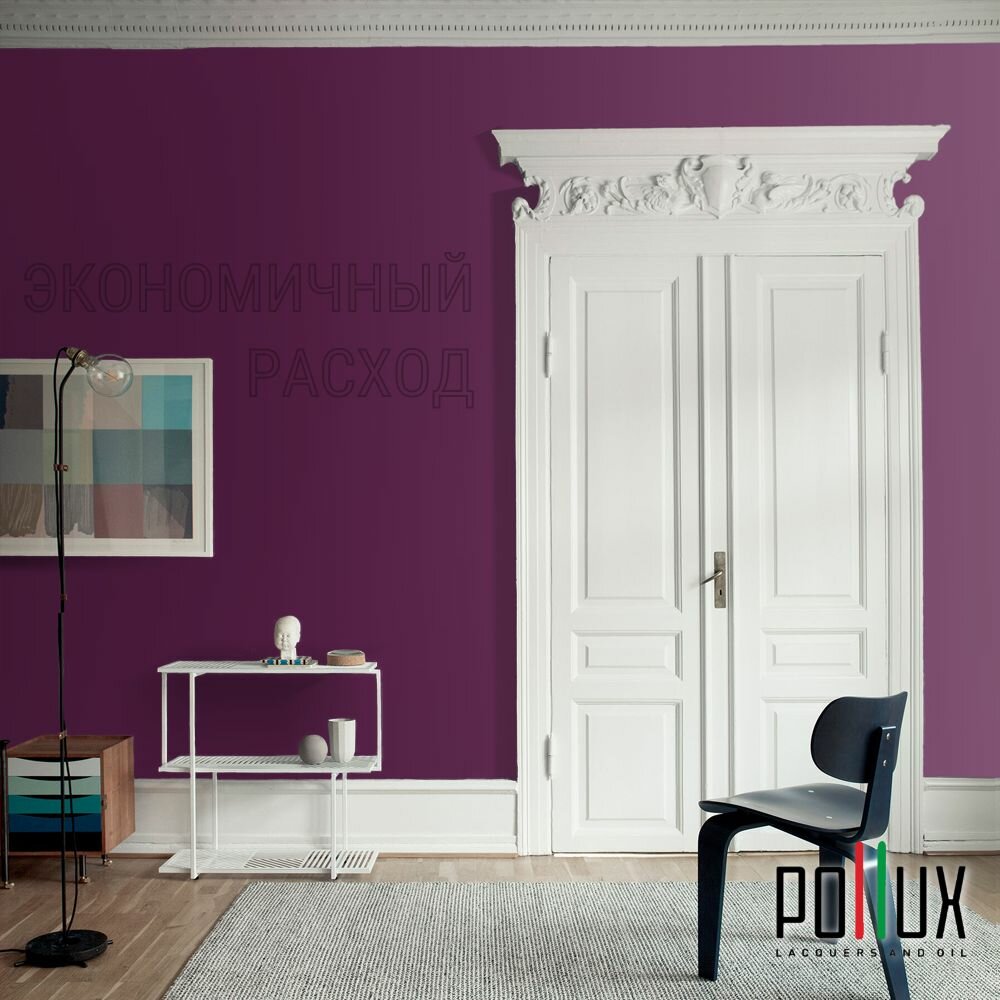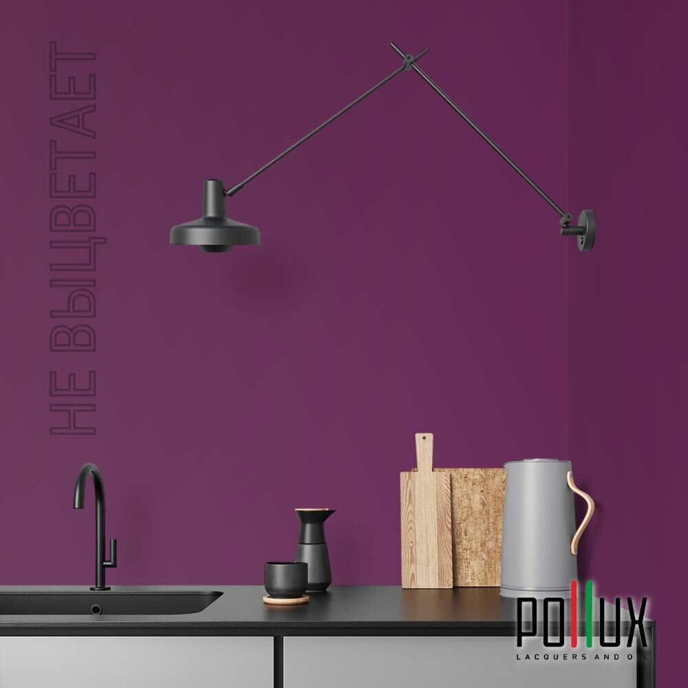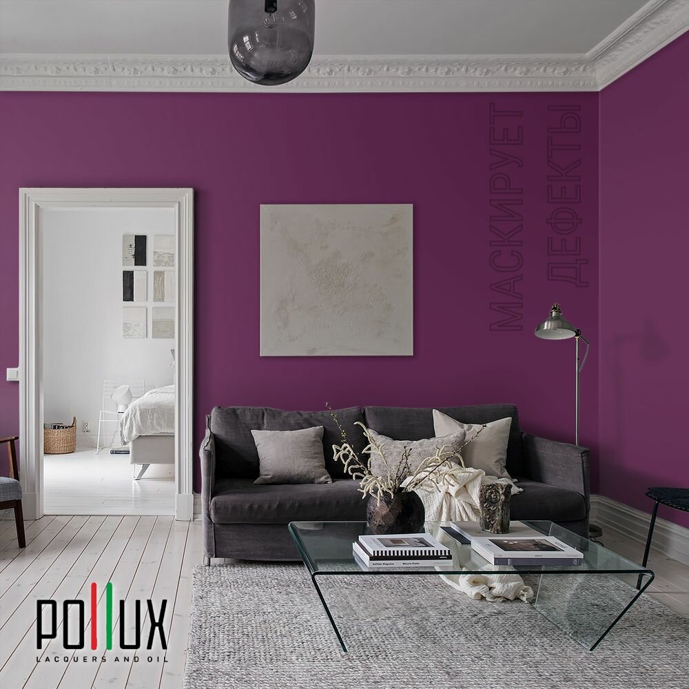 Краска моющаяся интерьерная для стен и потолков, Pollux INTERIOR без запаха, быстросохнущая, акриловая, матовое покрытие, цвет NCS S 2030-R40B, 1л.