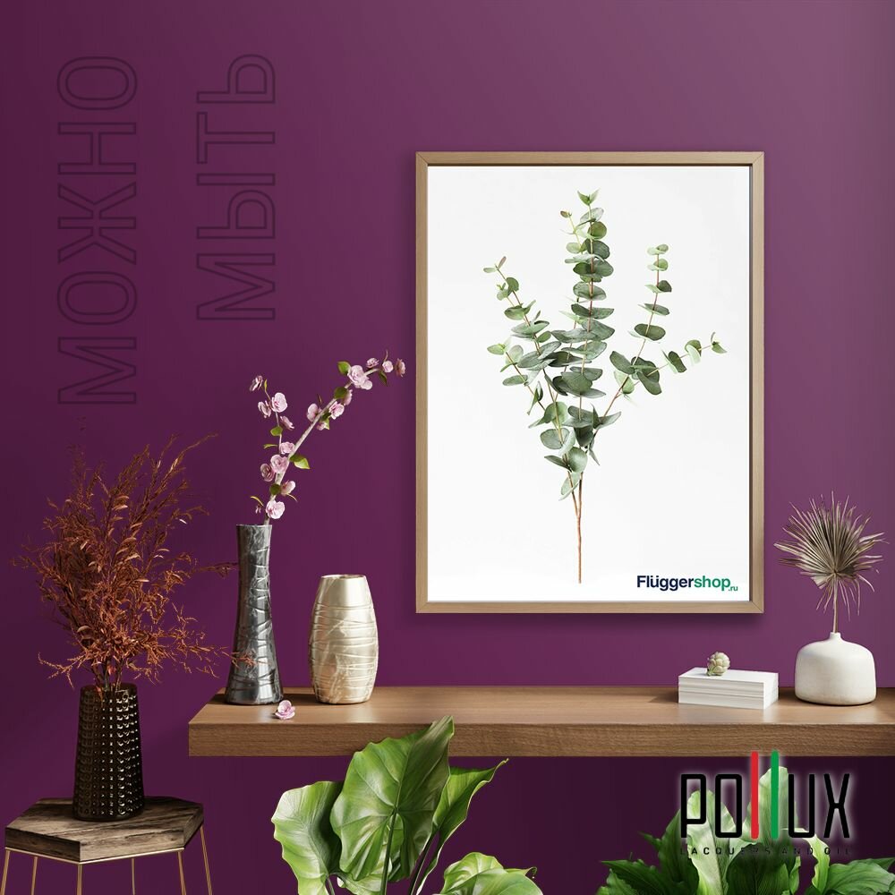 Краска моющаяся интерьерная для стен и потолков, Pollux INTERIOR без запаха, быстросохнущая, акриловая, матовое покрытие, цвет NCS S 2005-R40B, 1л.