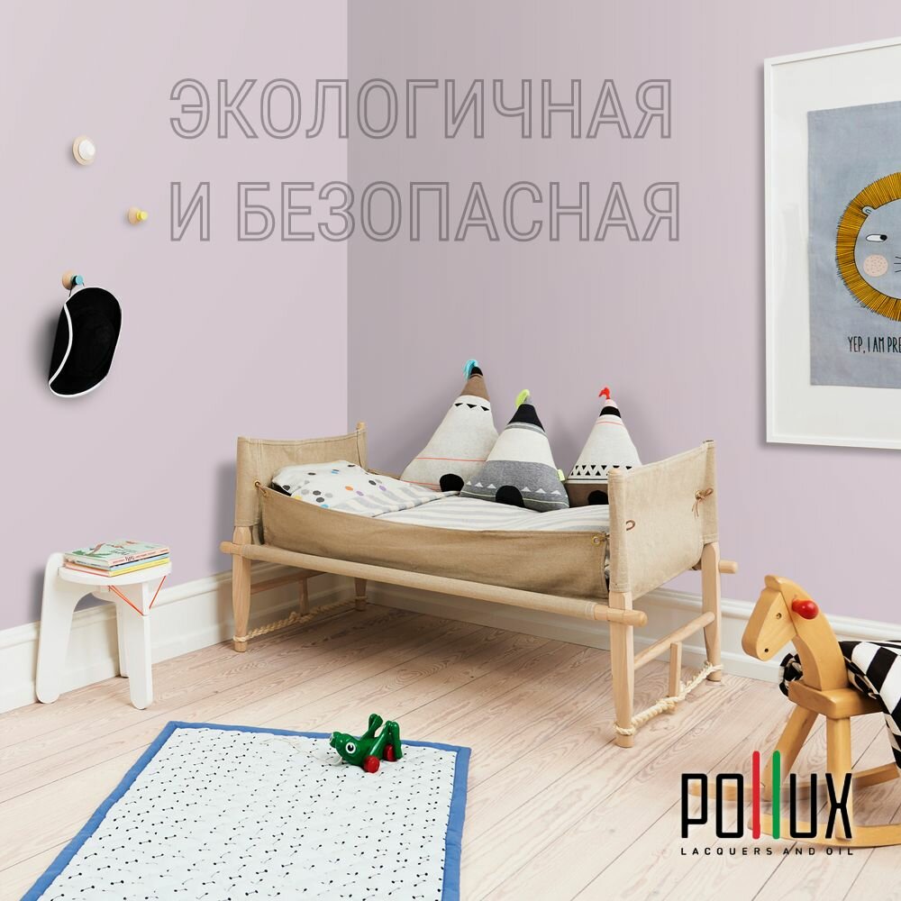 Краска моющаяся интерьерная для стен и потолков, Pollux INTERIOR без запаха, быстросохнущая, акриловая, матовое покрытие, цвет NCS S 0510-R40B, 1л.