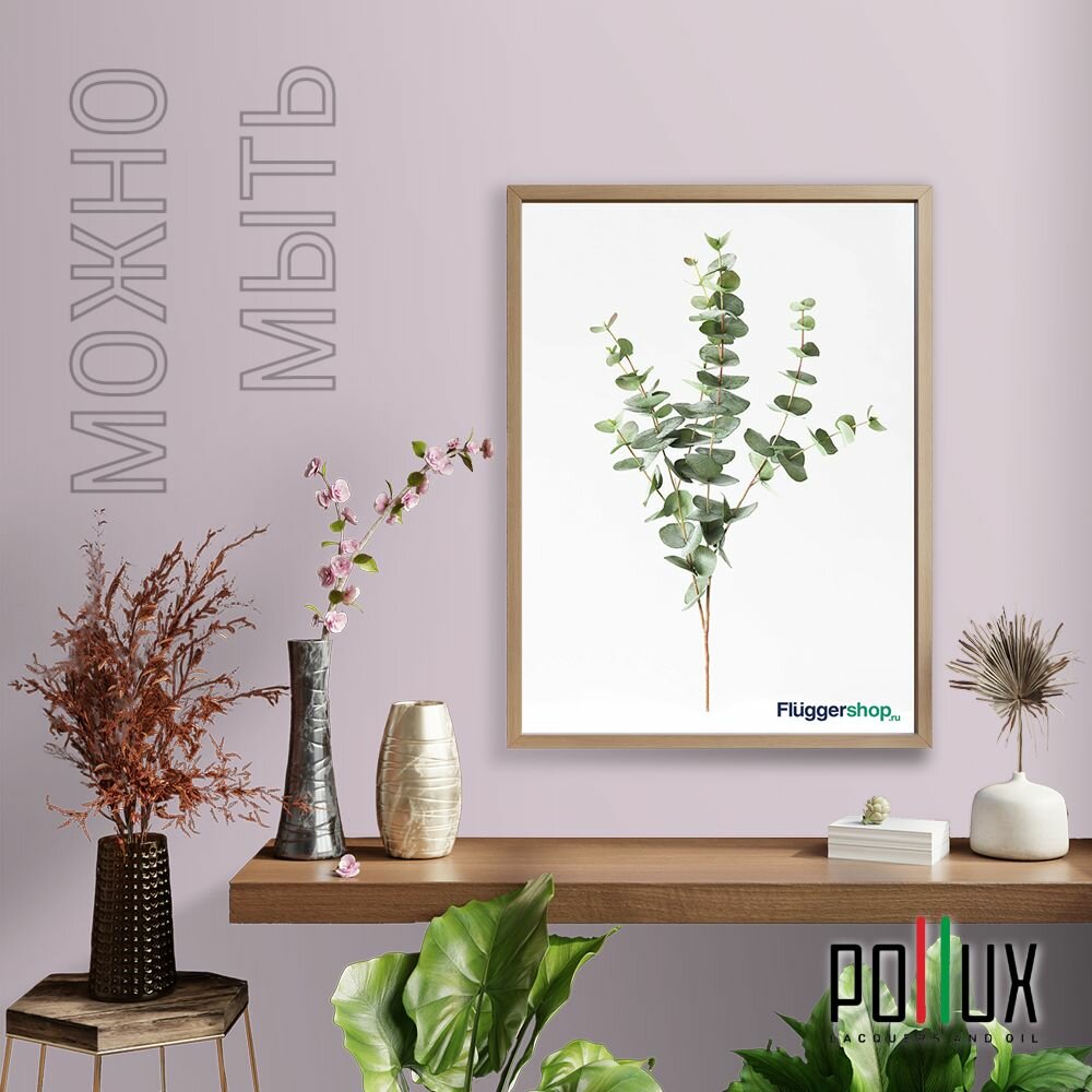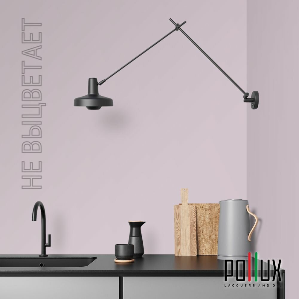 Краска моющаяся интерьерная для стен и потолков, Pollux INTERIOR без запаха, быстросохнущая, акриловая, матовое покрытие, цвет NCS S 0505-R40B, 1л.