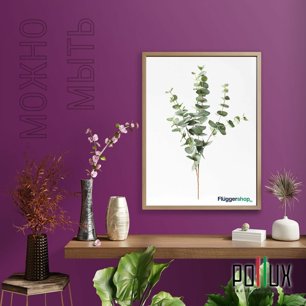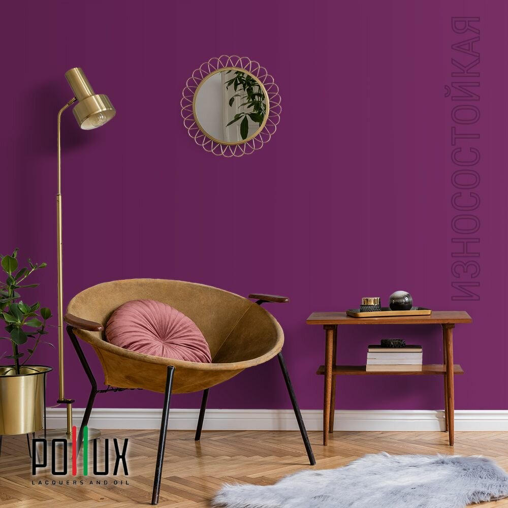 Краска моющаяся интерьерная для стен и потолков, Pollux INTERIOR без запаха, быстросохнущая, акриловая, матовое покрытие, цвет NCS S 2005-R40B, 1л.