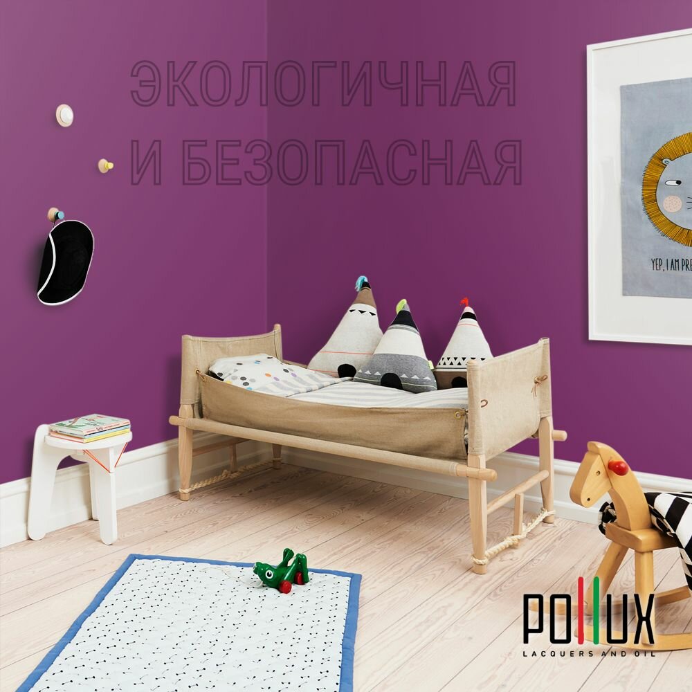 Краска моющаяся интерьерная для стен и потолков, Pollux INTERIOR без запаха, быстросохнущая, акриловая, матовое покрытие, цвет NCS S 2030-R40B, 1л.