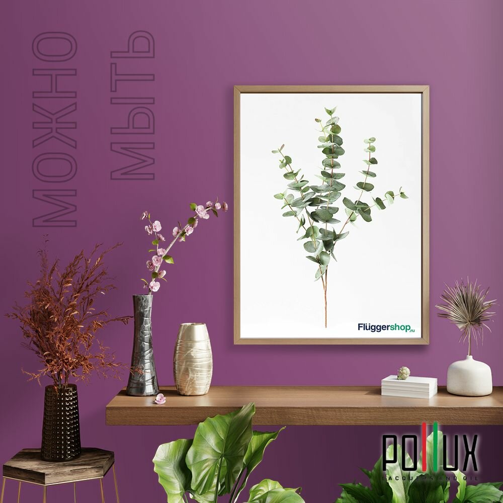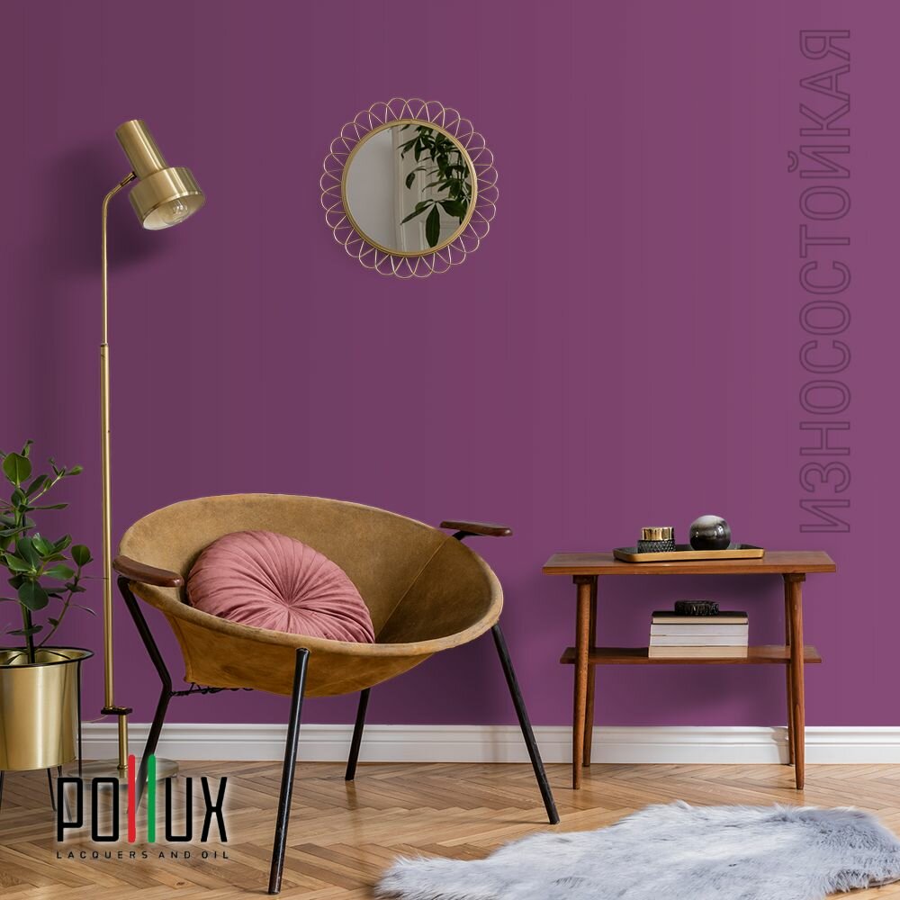 Краска моющаяся интерьерная для стен и потолков, Pollux INTERIOR без запаха, быстросохнущая, акриловая, матовое покрытие, цвет NCS S 2005-R40B, 1л.