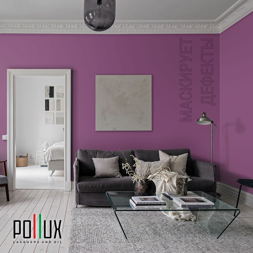 Краска моющаяся интерьерная для стен и потолков, Pollux INTERIOR без запаха, быстросохнущая, акриловая, матовое покрытие, цвет NCS S 0505-R40B, 1л.